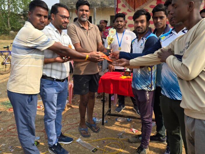 ब्लाक मालखरौदा के ग्राम चारपारा में CPLक्रिकेट मेच में मुख्य अतिथि जनपद सभापति मनोज सक्सेना एवं सरपंच ज्योति बलराम कुर्रे के द्वारा विजेता टीम को प्रथम पुरस्कार 15000दुसरा 10000रू प्रदान किया ।