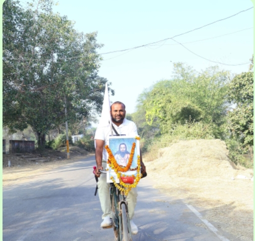 मानव मानव एक समान गुरु घासीदास जी के संदेश को जन-जन तक पहुंचाने के लिए गांव गांव जाकर साइकिल यात्रा कर रहा है208गांव पहुंचे हैं पितांबर बंजारे जी।