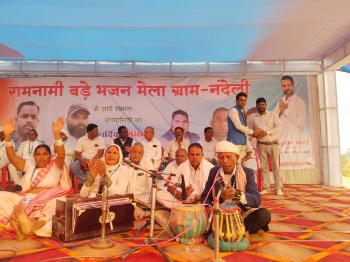प्रगतिशील (छ.ग.)सतनामी समाज के युवा जिलाध्यक्ष भीषम देव भारती को बड़े रामनामी मेला नंदेली ग्राम में अतिथि सम्मानित किया गया।