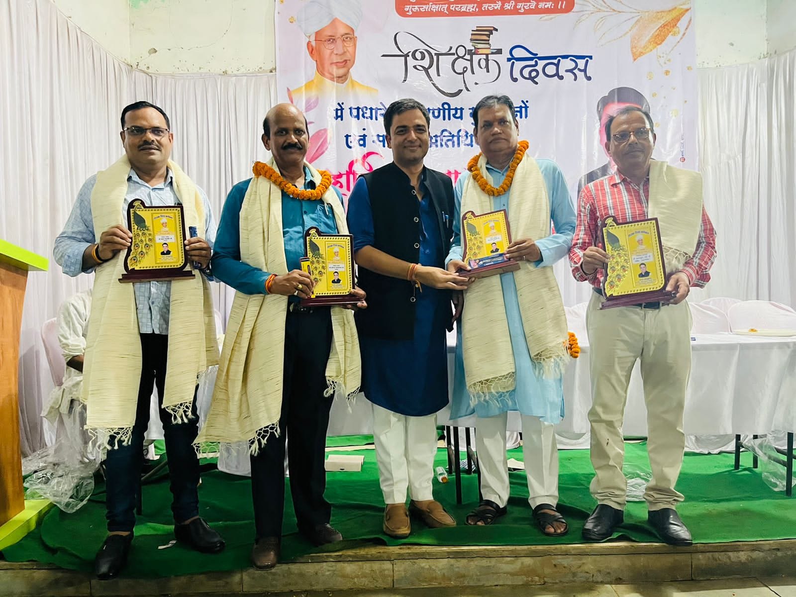 जिला सक्ती के ब्लाक जैजैपुर के सम्भावना भवन में शिक्षक सम्मान समारोह का आयोजन किया गया, जिसमें,जिला पंचायत सभापति,गगन जयपुरिया ने सेवानिवृत्त शिक्षक शिक्षिकाओं को शाल और पेन देकर सम्मानित किया।