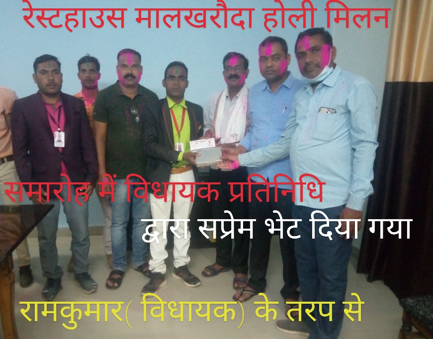 जिला सक्ती ,ब्लाक मालखरौदा प्रदेश मिडिया प्रभारी -अमीरकुमार (राजा) के साथ जिला मिडिया प्रभारी -अनंत कुमार चौधरी ।24 आज तक लाइव न्यूज चैनल एवं वेब … [Read more...] about मालखरोदा के रेस्ट हाउस में 17 मार्च 5:00 बजे शाम को होली मिलन समारोह में चंद्रपुर विधायक राम कुमार यादव के तरफ से विधायक प्रतिनिधि द्वारा पत्रकारों को सप्रेम भेंट दिया गया।