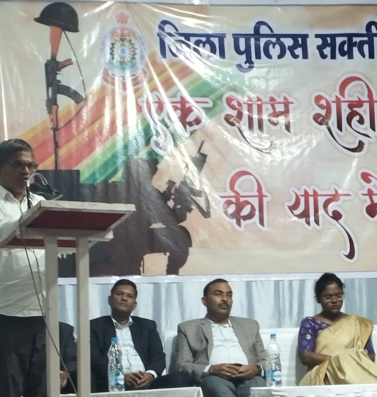 जिला सक्ती में कलेक्टर व जिलाधीश नूपुर राशी पन्ना जी के मुख्य आतिथ्य में एवं विशेष न्यायाधीश यशवंत सारथी एवं (SP)एम. आर.आहिरे के नेतृत्व में पुलिस बल द्वाराआयोजित एक शाम शहिदों के याद में श्रधांजलि अर्पित किया ।