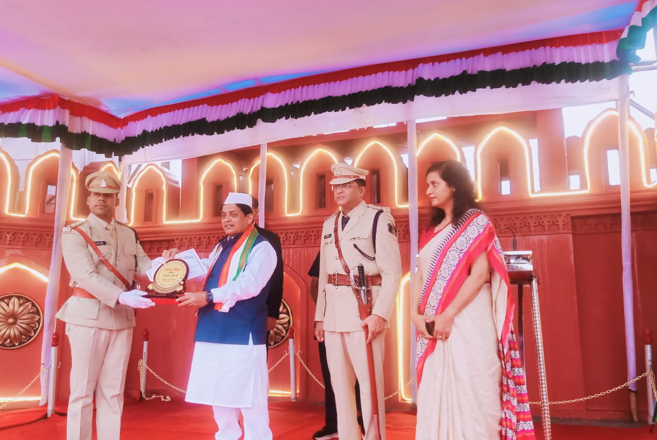 15अगस्त सवतंत्रता दिवस शुभ अवसर पर मुख्य अतिथि माननीय शिव कुमार डहरिया मंत्री( छ.ग.) शासन द्वारा उत्कृष्ट कार्य करने वाले पुलिस अधिकारी कर्मचारी को शील्ड व प्रमाण पत्र देकर सम्मानित किया।