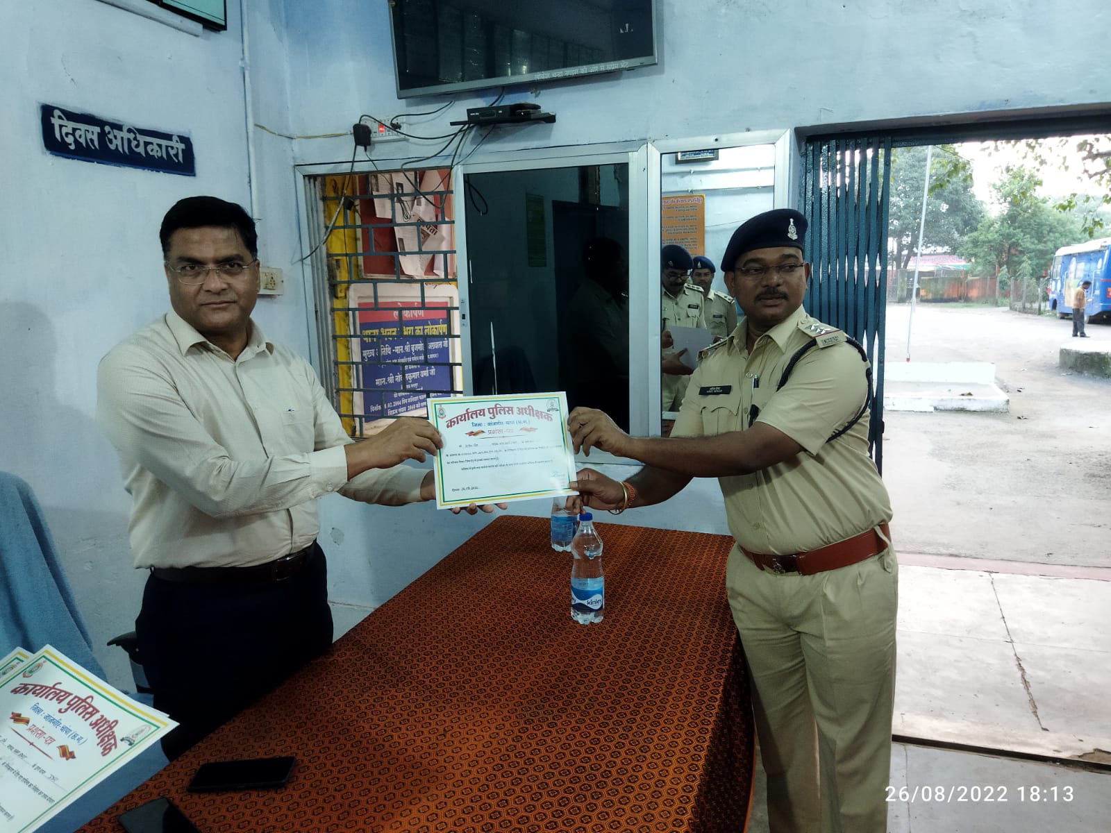 जिला जांजगीर चापां के पुलिस अधीक्षक (SP) विजय अग्रवाल सर द्वारा बाढ़ के दौरान लगन एवं मेहनत से डयूटी करने वाले पुलिसकर्मियों को प्रमाणपत्र देकर सम्मानित किया गया।