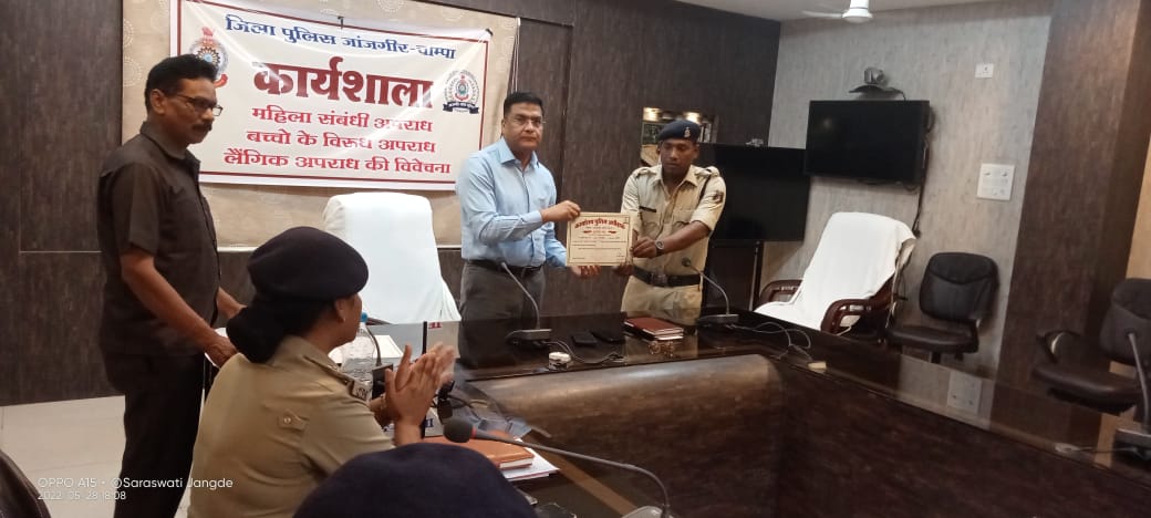 जिला जांजगीर चांपा /(छ.ग.) प्रदेश रिपोर्टर अमीर राजा के साथ जिला रिपोर्टर अनंत कुमार चौधरीँ रिपोर्टर अनिल टंडन ,कैमरामैन हितेश कुमार 24आज तक लाइव … [Read more...] about पुलिस अधीक्षक कार्यालय जांजगीर के सभाकक्ष में महिला विरुद्ध अपराध एवं विवेचना संबंध में 29मई 2022को एक दिवसीय कार्यशाला का आयोजन किया इस कार्यक्रम के मुख्य अतिथि विशेष सत्र न्यायाधीश रामखिलावन रिगरी ,अधयक्षता श्री विजय अग्रवाल( SP)विशिष्ट अतिथि गितेश कौशिक जिला सचिव रहै।