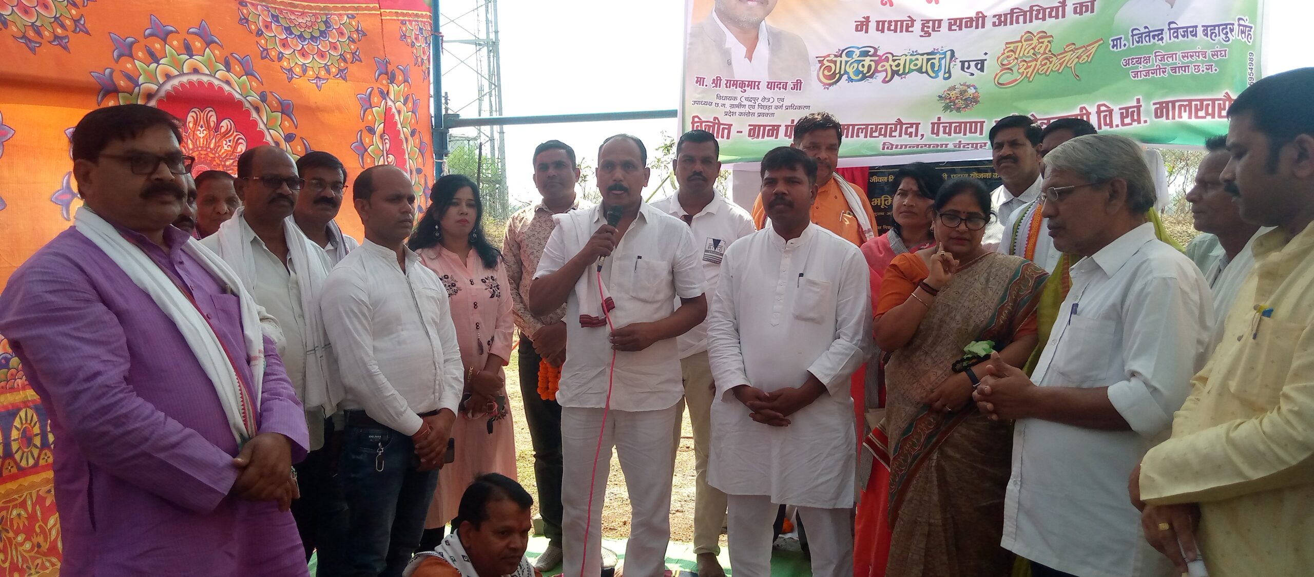 चंद्रपुर विधायक व राज्य मंत्री मान.रामकुमार यादव जी के मुख्य अतिथि के करकमलों द्वारा दिनांक 24अप्रेल 2022को मालखरौदा के गौठान के पास पानी टंकी निर्माण के लिए 2करोड़ 71लाख 54हजार के लागत से भूमि पुजन कर शिलान्यास किया।