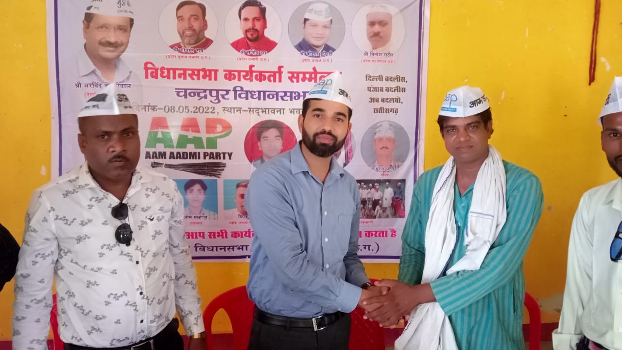 आम आदमी पार्टी के मुख्य अतिथि (छ.ग.)प्रदेश संगठन मंत्री भानुप्रकाश चंद्रा जी के नेतृत्व में दिनांक 8-5-2022दिन रविवार को ब्लॉक मालखरौदा के सदभावना भवन में चंद्रपुर विधानसभा क्षेत्र के संगठन के विस्तार के लिए अवाश्यक बैठक रखा गया ।