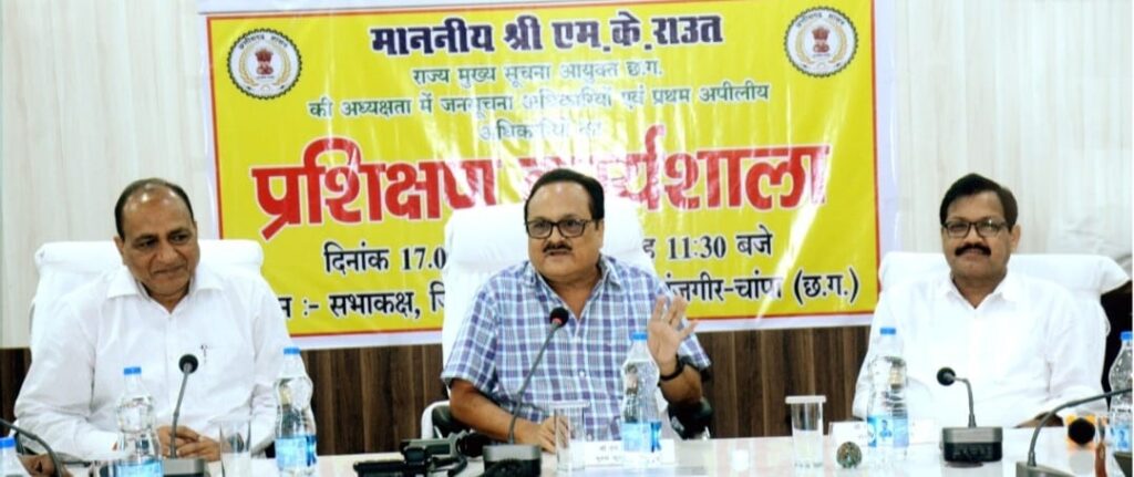 छ.ग.)के मुख्य सूचना आयुक्त एम.के.राऊत .के अध्यक्षता प्रशिक्षण दिया गया।