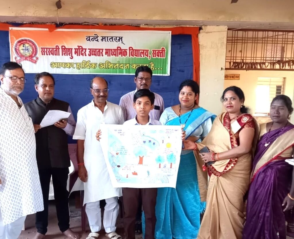 सरस्वती शिशु मंदिर विद्यालय सक्ती जल संरक्षण को लेकर अकर्षण चित्रकला ।