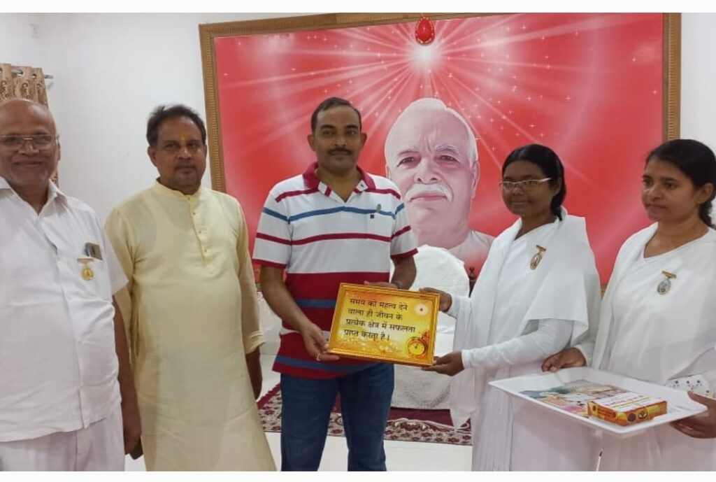 पश्चात मंत्रोच्चार व पूजन के साथ चैतन्य देवियों की सामुहिक आरती व पूजन की गई जिसमें ब्रह्माकुमारी बहन मधु, कांति के साथ ही भाई विमल, राजेश, नरेश, देव, राजा, सोनू तारक आदि के साथ नगर के साथ गांव से आए सभी भाई बहनों ने पूजा में शामिल होकर चैतन्य देवियों का आशीर्वाद प्राप्त किया तथा ब्रह्मा कुमारी बहनों के द्वारा अभ्यागतों का ईश्वरीय वरदान भेंट कर सम्मान किया गया।