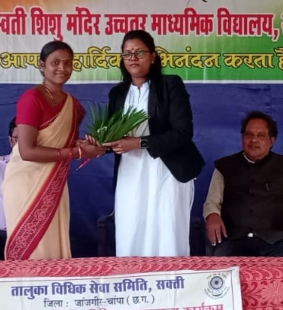 व्यवहार न्यायाधीश चेतना सिंह जी को फूलों से सम्मानित किया