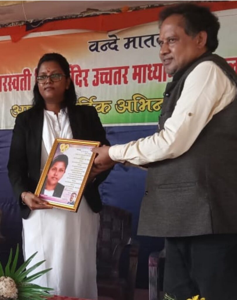 कार्यक्रम विद्यालय परिवार के द्वारा मुख्य अभ्यागत कु चेतना सिंह व डा सूरज को श्रीफल व स्मृति चिन्ह देकर सम्मानित किया गया।आभार प्रदर्शन प्राचार्य चूड़ामणि साहू ने किया तो वहीं सावित्री महंत व बिरिछ राम बरेठ अरपा पैरी राज गीत से समापन किया।