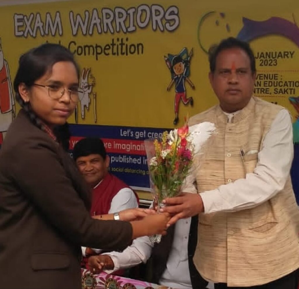सक्ती- भारतीय जनता पार्टी द्वारा आज गुंजन एजुकेशन स्कूल में देश के यशस्वी प्रधानमंत्री नरेंद्र मोदी के संकल्पना को साकार करते हुए परीक्षा से पहले परीक्षा पे चर्चा कार्यक्रम के तहत परीक्षा पर चर्चा थीम पर आधारित पेंटिंग एवं आर्ट प्रतियोगिता का आयोजन किया गया है। जिसमें मुख्य अतिथि जांजगीर चांपा सांसद गुहाराम अजग्ले, अध्यक्षता पूर्व विधायक डॉ खिलावन साहू एवं विष्टअतिथि पूर्व नगरपालिका अध्यक्ष राम अवतार अग्रवाल थे। कार्यक्रम का शुभारंभ अतिथियों के द्वारा भारत माता के प्रतिमा पर माल्यार्पण एवं दीप प्रज्जवलित कर किया गया।