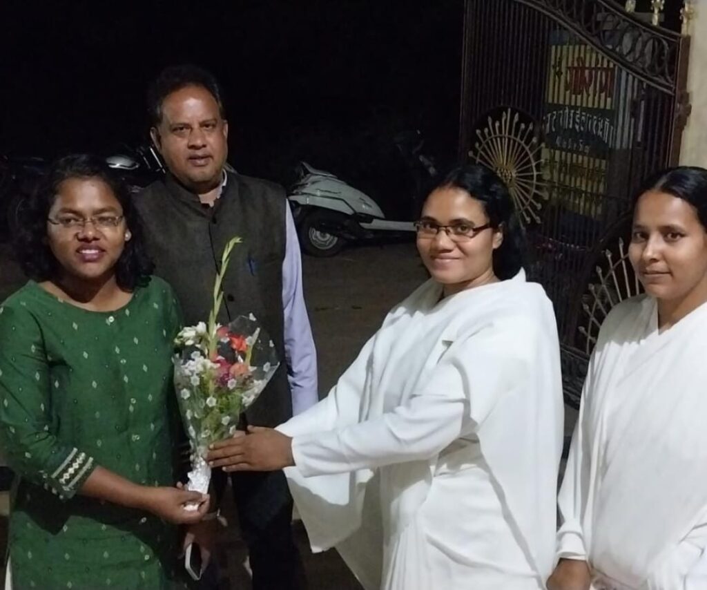कलेक्टर एवं जिलाधिश नुपुर राशि जी को ब्रह्म कमारी बहने फूलो की गुलदस्ता देकर स्वागत किया।साथ में हाईकोर्ट अधिवक्ता चितरंजय सिहं पटेल जी ।