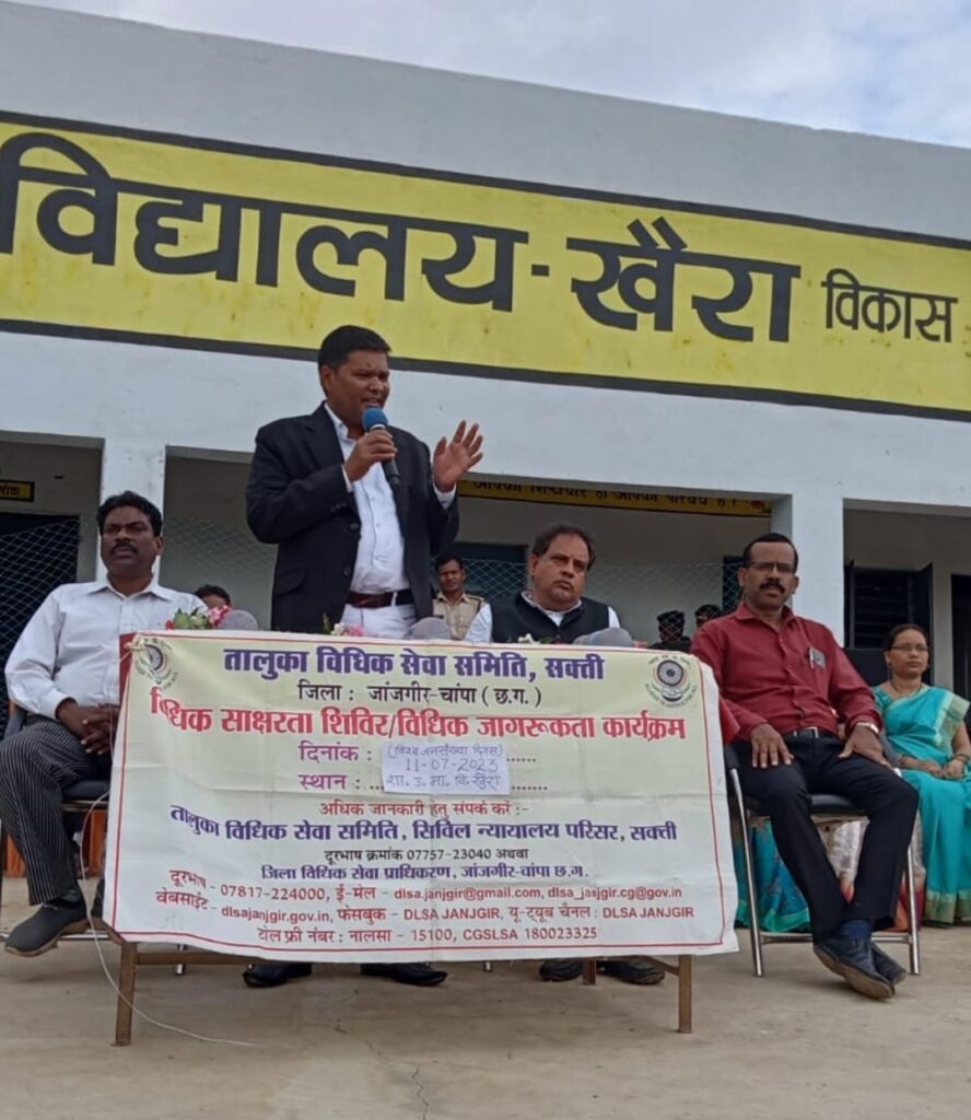 न्यायाधीश यशवंत सारथी ने कानून संबंधित जानकारी दिया साथ ही अधिवक्ता राकेश रोशन महंत व हाई कोर्ट अधिवक्ता चितरंजन सिंह पटेल जी उपस्थित रहे