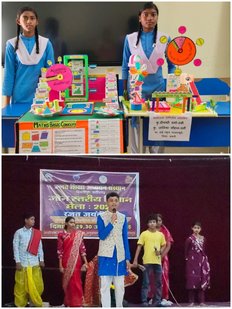 दिनांक 29 और 30 अक्टूबर 2025 को शासकीय उन्नत शिक्षा महाविद्यालय बिलासपुर में आयोजित जोन स्तरीय विज्ञान प्रदर्शनी एवं पश्चिम भारत बाल विज्ञान मेला में कुमारी दीपांशी वर्मा ने अपने गणित मॉडल को अत्यंत मनोरंजन और प्रभावशाली तरीके से प्रस्तुत किया। इस परियोजना में तान्या चौहान ने सहयोगी के रूप में महत्वपूर्ण भूमिका निभाई।