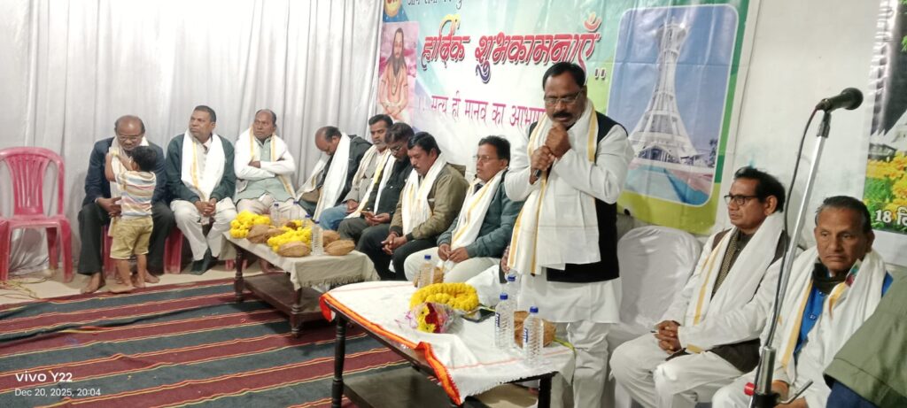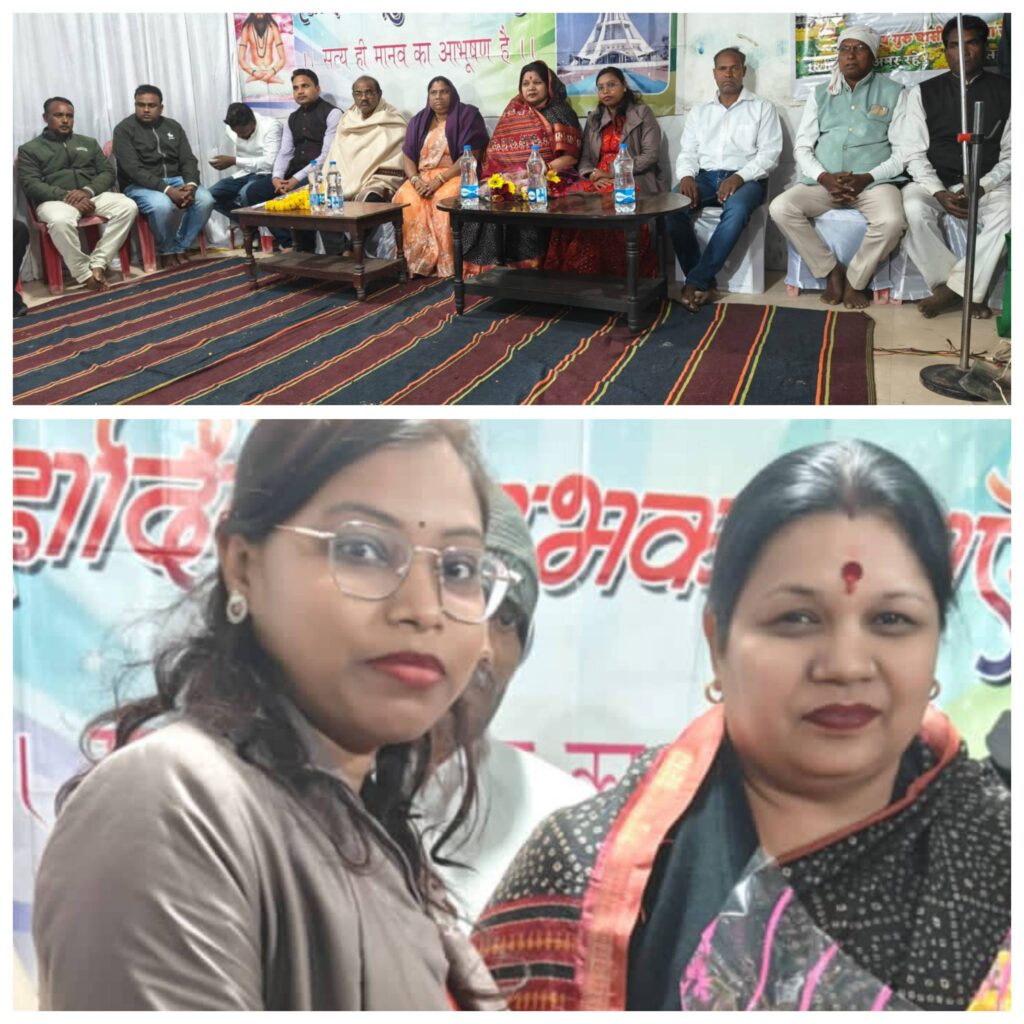 एवं इस भक्तिमय आयोजन के मंच पर उपस्थित सामजिक प्रबुद्धजनों में प्रगतिशील छत्तीसगढ़ सतनामी समाज सक्ती ब्लाक अध्यक्ष अमरसिंह जांगड़े, सेवानिवृत्त प्राचार्य एच आर धीरही, व्याख्याता लहाराम रात्रे, दिलीप पेंसिल, पूर्व प्रवक्ता प्रगतिशील छत्तीसगढ़ सतनामी समाज सक्ती उदय मधुकर, पत्रकार योम प्रकाश लहरे टी आर धीरहे सहित समाज के प्रबुद्धजनों की उपस्थिति रही।इस मौके पर सतनामी समाज के ब्लाक अध्यक्ष अमर सिंह जांगड़े ने कहा समाज में व्याप्त नशापान, व्यसन, कुरीतियां, आडंबर सहित अंधविश्वासों को दूर कर वैज्ञानिकता की ओर आगे बढ़ने की बात कही। प्रगतिशील छत्तीसगढ़ सतनामी समाज सक्ती जिला ईकाई के पूर्व जिला प्रवक्ता उदय मधुकर ने अपने उद्बोधन में बाबा गुरू घासीदास जी के सतनाम आंदोलन के बारे में विस्तार से बताया और समाज के उत्थान के लिए उनके द्वारा किए योगदान को याद कर मनखे- मनके एक बरोबर के समतामूलक सतनाम विचारधारा को आत्मसात कर जीवनपथ पर आगे बढ़ने की बात कही। सेवानिवृत प्राचार्य एच आर धीरहे ने बाबा गुरू घासीदास को दलित शोषित,पीड़ित जनों के साथ -साथ सम्पूर्ण मानव समाज का उद्धारक बताया। व्याख्याता दिलीप डेंसिल ने बाबा गुरू घासीदास जी को सतनाम विचारधारा का प्रवर्तक बताते हुए उनकी सतनाम शिक्षाओं को सच्चे मन से आत्मसात कर आगे बढ़ने की बात कही। एवं अंतर्राष्ट्रीय उपभोक्ता कल्याण समिति के प्रदेश अध्यक्ष नितू टंडन जी सांसद कमलेश जांगड़े जी को फूलो से स्वागत करते हुए गुरु घासीदास बाबा जी की महान विचार को बताया गुरु बाबा महान तप जप तपस्या किया तब जाकर सत्य को प्राप्त किया,हम सभी को उनके विचारों को अमल करके जीवन जीना चाहिए, मिलकर कार्य करे,एक दुसरे की मतद सहायता करें,क्षमा करें,जीवो पर दया करें।