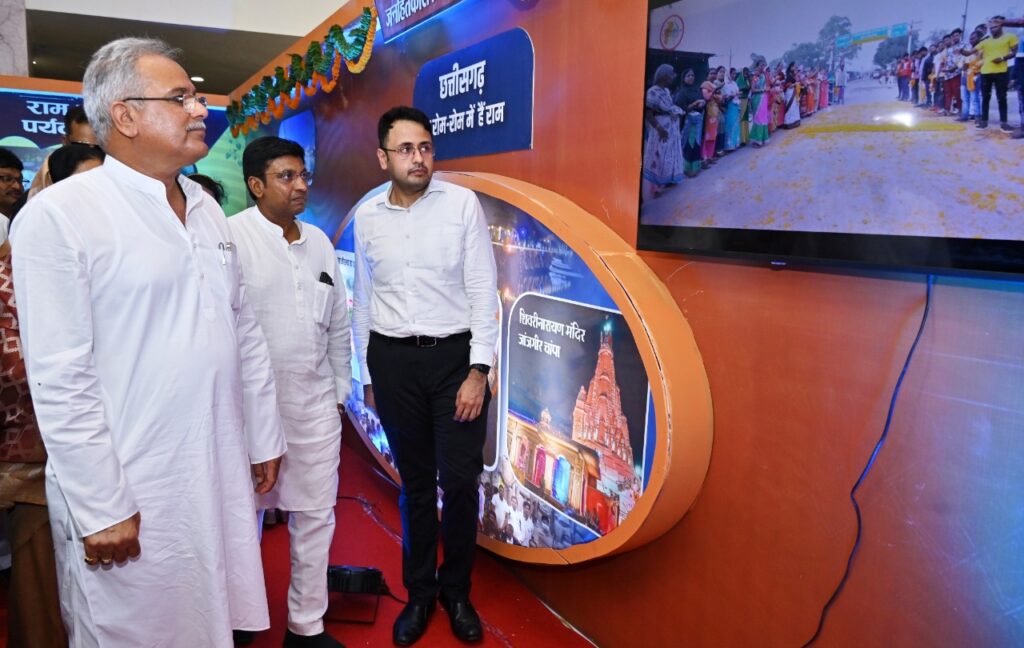 रायपुर, 21 मई 2022/ मुख्यमंत्री श्री भूपेश बघेल ने आज किसानों के साथ रायपुर के साइंस कॉलेज ऑडिटोरियम में राज्य स्तरीय विकास प्रदर्शनी का शुभारंभ किया। पूर्व प्रधानमंत्री भारत रत्न स्वर्गीय श्री राजीव गांधी की पुण्य तिथि पर जनसंपर्क विभाग द्वारा छत्तीसगढ़ में पिछले साढ़े तीन वर्षों में हुए विकास एवं उपलब्धियों पर आधारित इस छायाचित्र प्रदर्शनी का आयोजन किया गया है। राज्य शासन की प्राथमिकता वाली योजनाओं पर इसमें विशेष रूप से फोकस किया गया है। अगले एक महीने तक यह छायाचित्र प्रदर्शनी आम लोगों के लिए खुली रहेगी।
