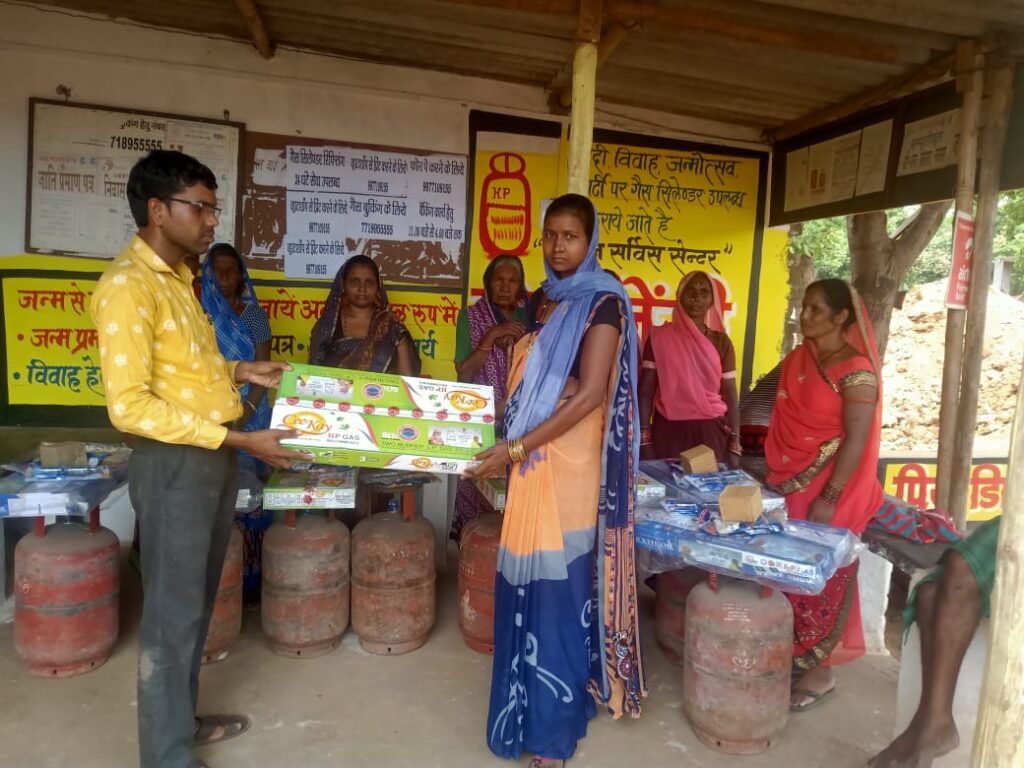रामकुमार मनहर संचालक द्वारा ग्रमीण नागरिक को गैस सिलेंडर वितरण किया गया।