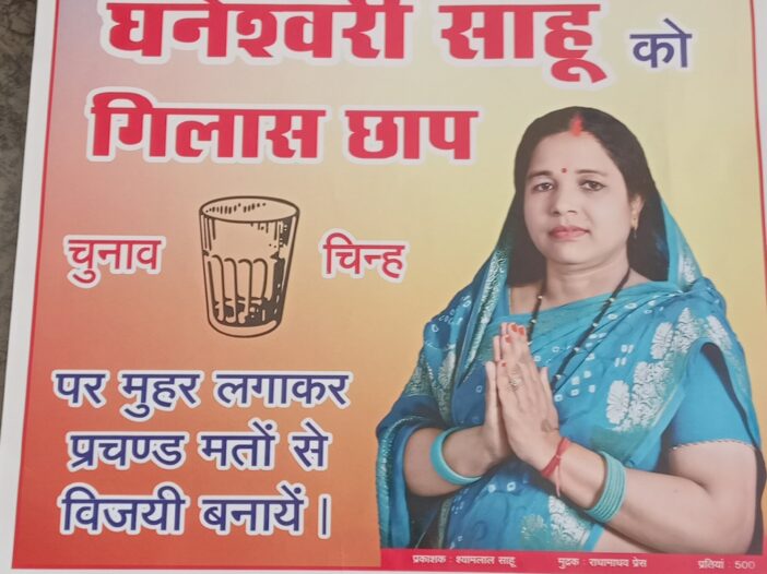 ग्राम सेंदुरस से शिक्षित योग्य जुझारू मिलनसार सरपंच प्रत्याशी धनेश्वरी साहू जी को गिलास छाप में बोट देकर विजयी बनावे।