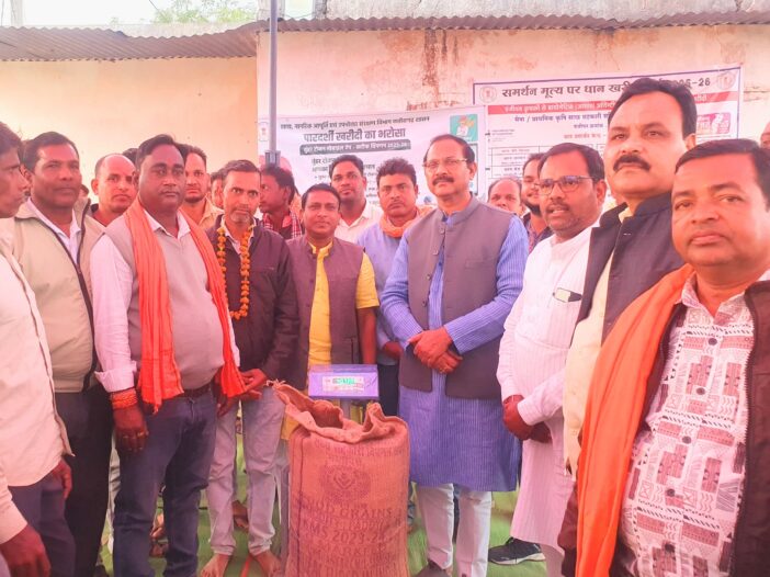 ग्राम पंचायत भातमाहुल में धान खरीदी का शुभारंभ पूर्व जिला अध्यक्ष भाजपा भैया श्री कृष्णकांत चन्द्रा जी , के मुख्य आतिथ्य में संपन्न हुआ