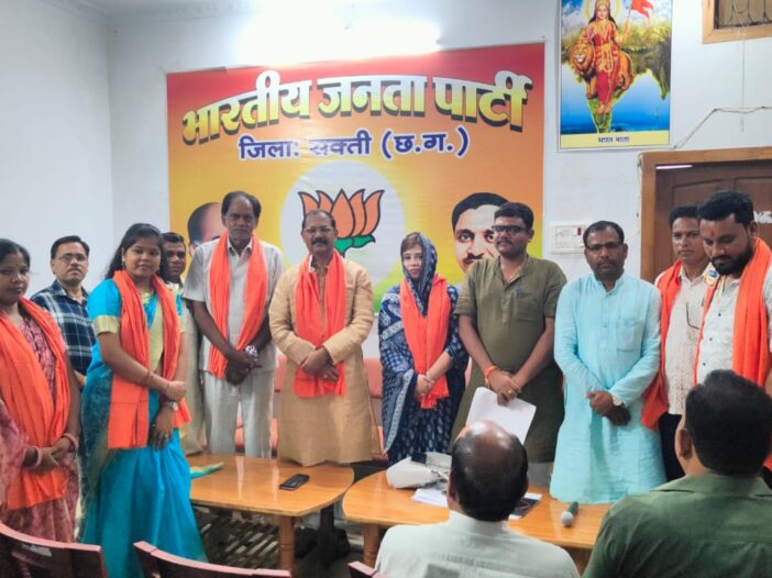 भाजपा कार्यालय जिला सक्ती में जनपद पंचायत जैजैपुर के अध्यक्ष सहित जनपद सदस्यो ने भारतीय जनता पार्टी में शामिल हुआ