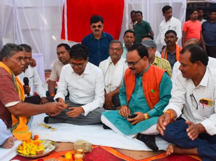 पूर्व विधानसभा अध्यक्ष एवं वर्तमान नेता प्रतिपक्ष डॉ. चरणदास महंत जी ग्राम पिहरीद में किया भागवत कथा का श्रवण