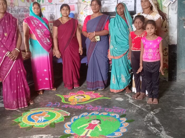 (छ.ग.)आ.बा.कार्य.सहा.संघ 409क्रा.के जिलाध्यक्ष कार्यकर्ता चेता बंजारे अपने केंद्र मोंहदीकला 1 में बेटी बचाओ बेटी पढ़ाओ की रंगोली सजाकर जागरूक किया